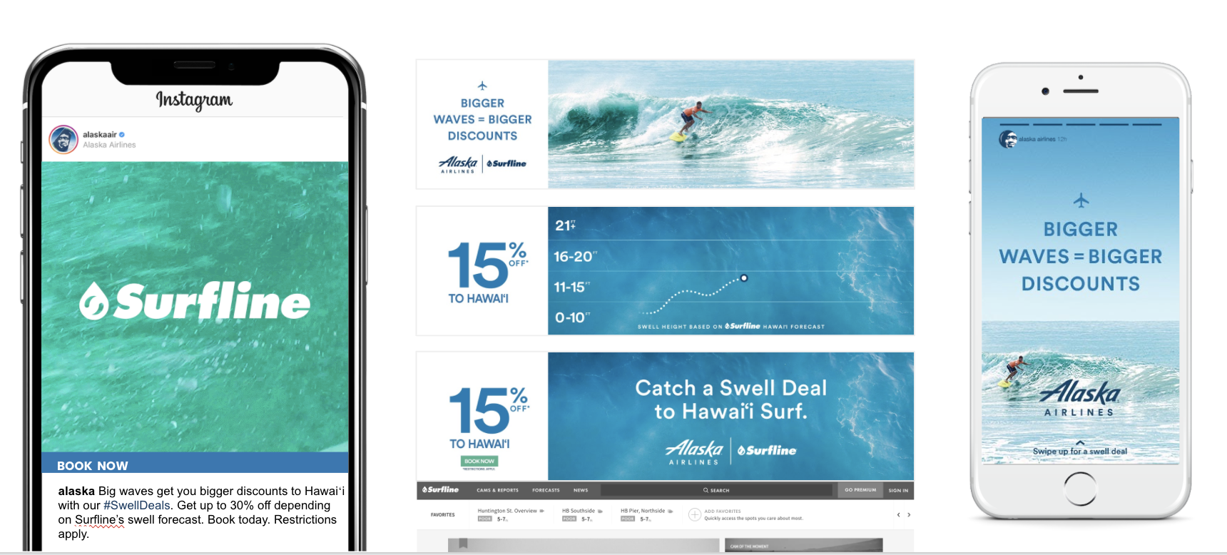Partnering with Surfline, the preeminent surf forecasting site, Alaska Airlines created Swell Deals,